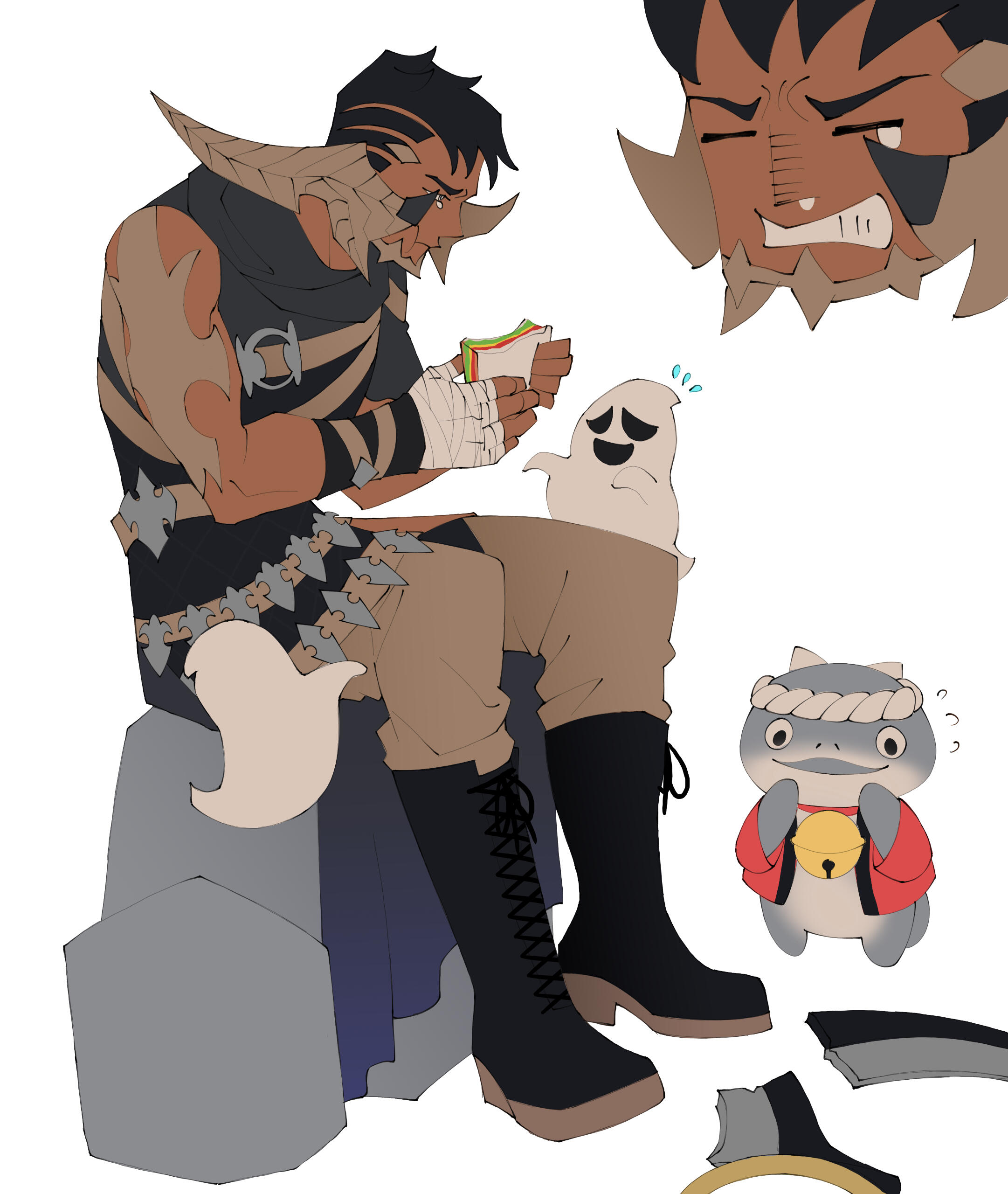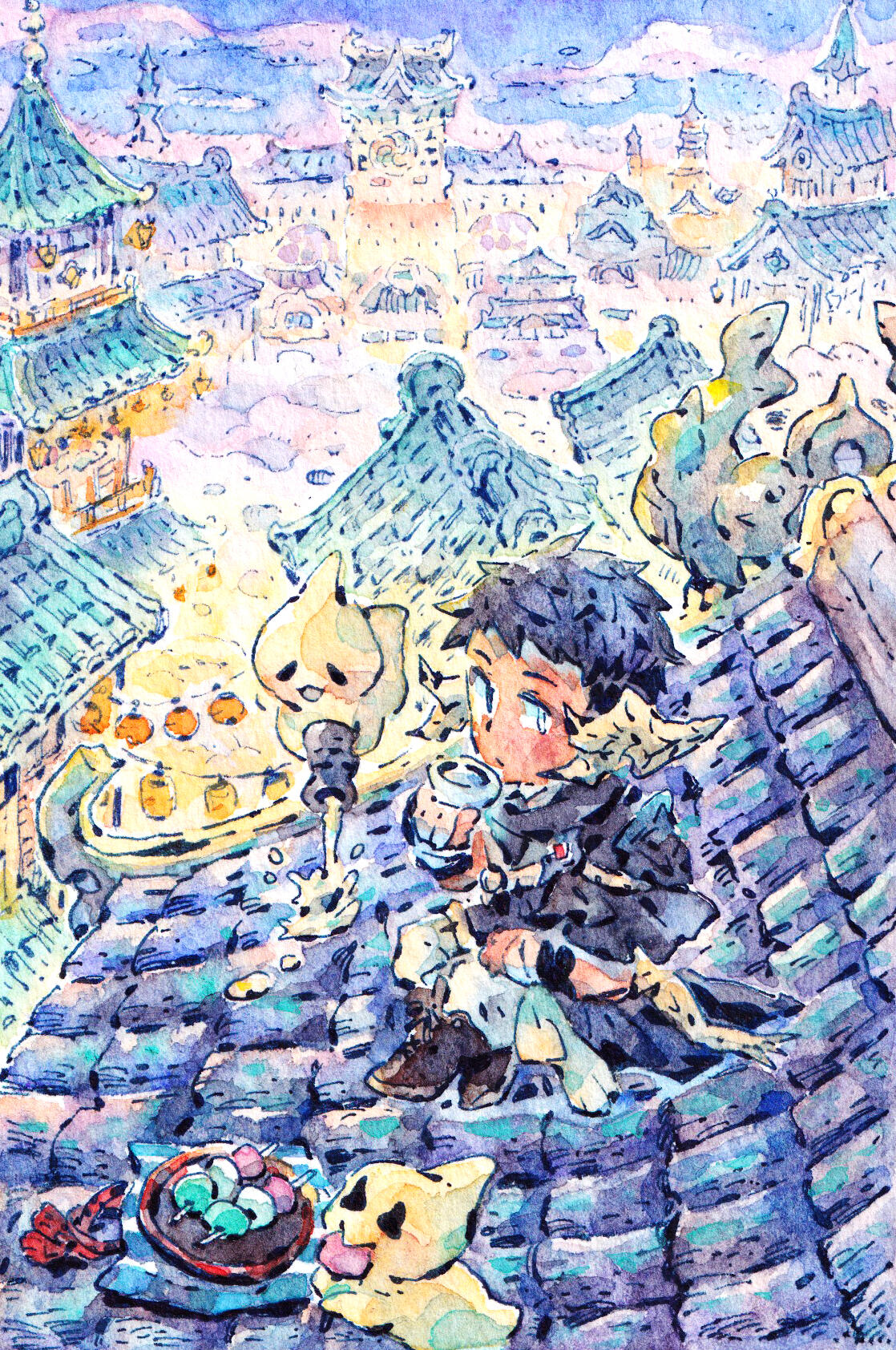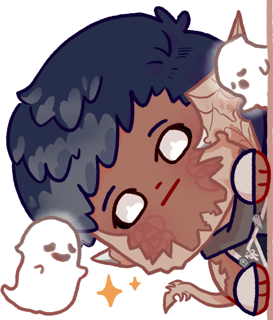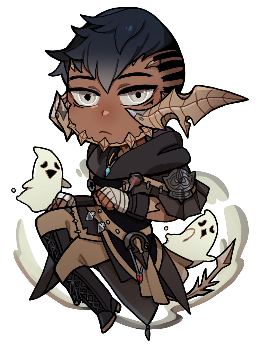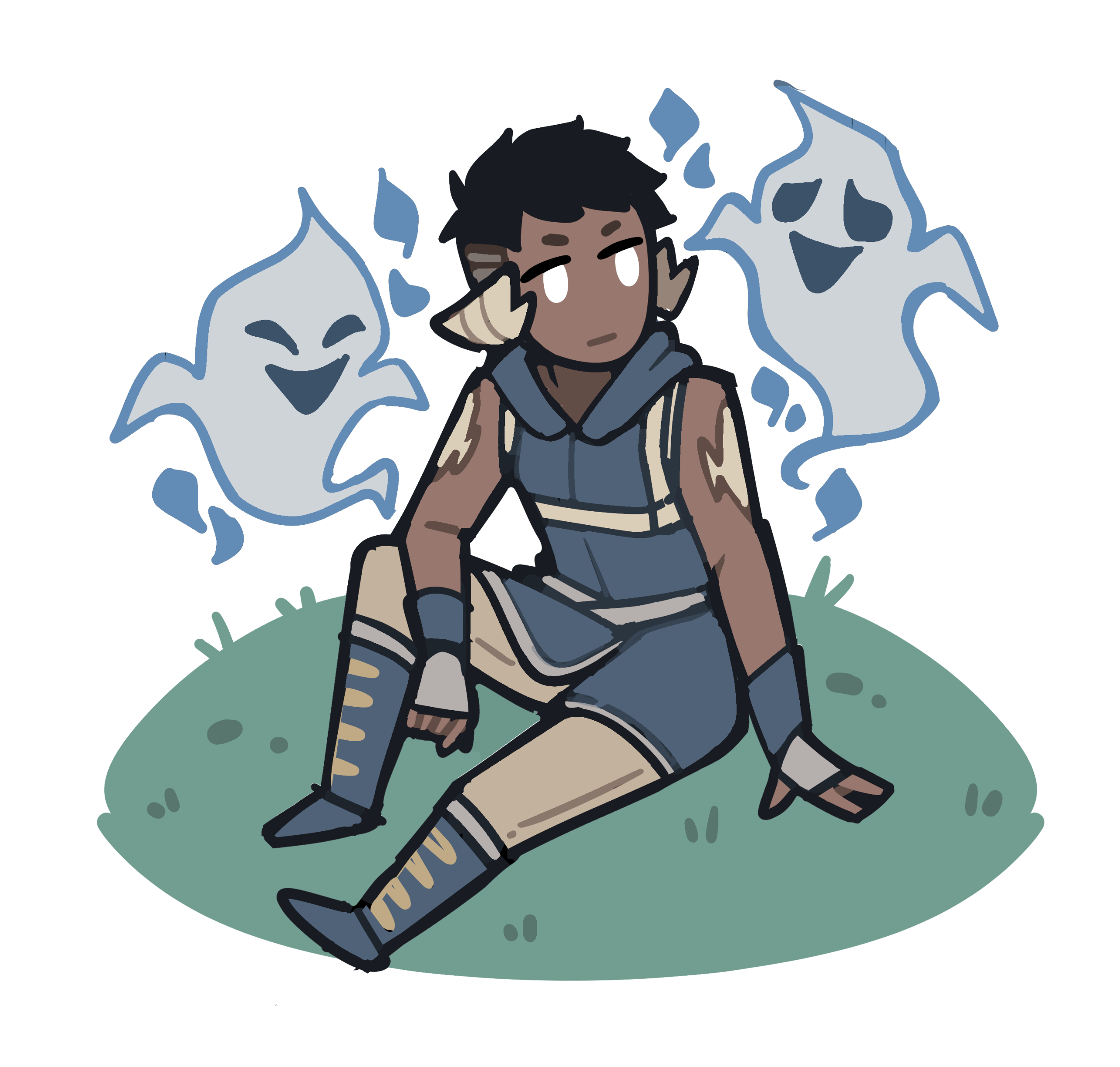 Mothanks to his eyes he can see spirits, so he makes two little friends who eventually become his traveling companions.